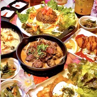 ウエディングの二次会やバースデーパーティー向けのプランなどもありますが、今回ご紹介するのは「3時間貸切♪パーティープラン 3,500円 (税抜)」。その名の通り、同店を3時間貸切にしての宴会が叶います。提供される料理は、デザートまで含めて合計9品。これに飲み放題や設備使用も含まれているというから、とってもお得です。