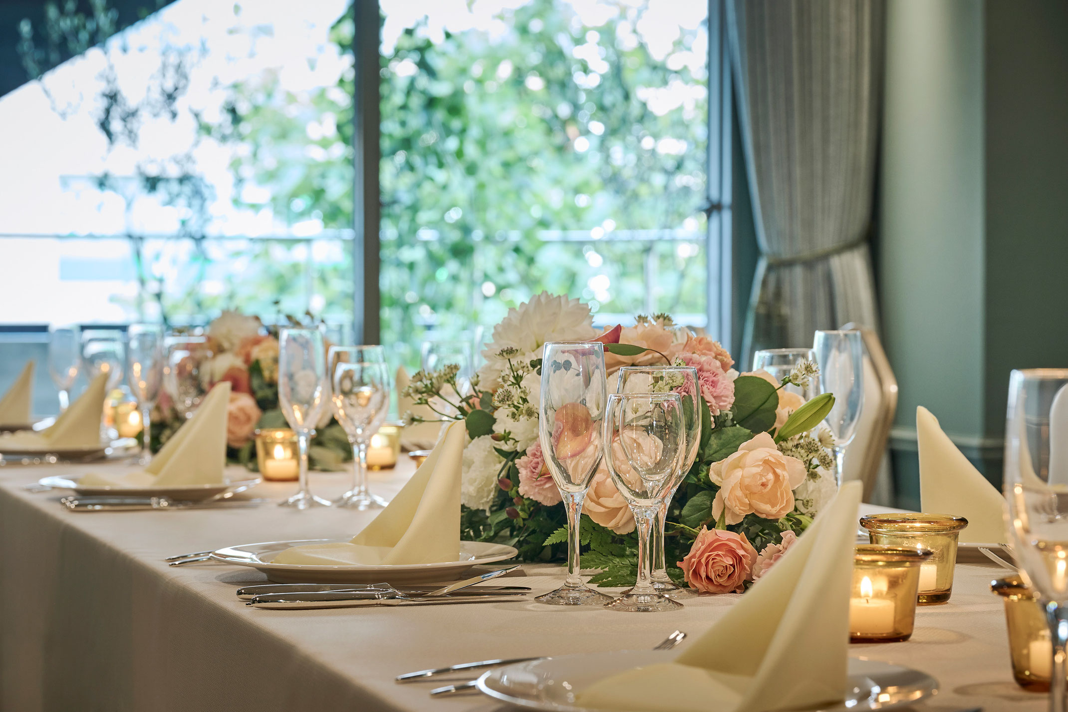 小宴会場は柔らかい光が降り注ぐ華やかな空間で、家族やグループなど少人数での会食や会議などの利用に適しています。