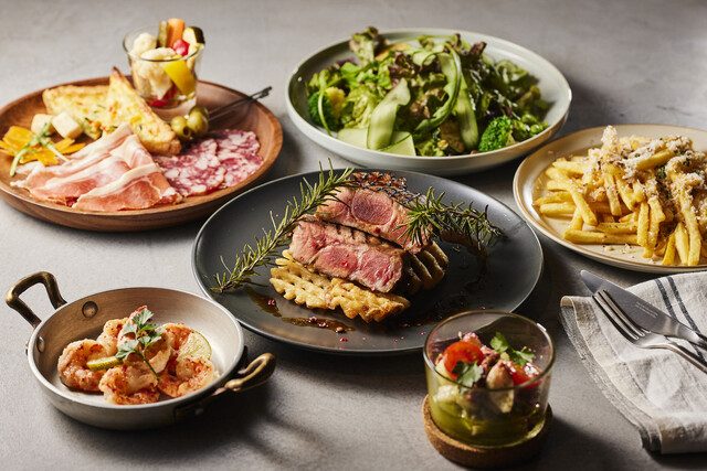 お店の名物スペアリブを中心とした料理を味わうことができ、モーニングからディナー、バータイムまで1日を通して心地よく過ごせます。
