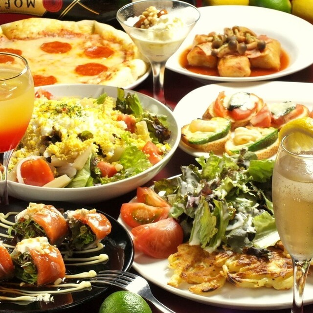 料理は、パーティーや各種宴会にぴったりなピザなどのメニューがボリューム満点。
